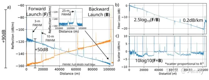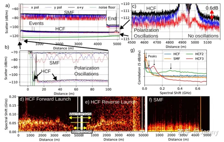 2025年的OFC会议,N. K. Fontaine等人,通过改进两种新型OFDR系统,研究人员首次对空芯DNANF进行了高度详细的分布式表征。第一个系统能达到5公里,具有亚毫米分辨率,可测量分布式模式双折射;第二个系统能探测超过100公里,在10公里(100公里)处分别实现3米(25米)分辨率,动态范围>90 dB。